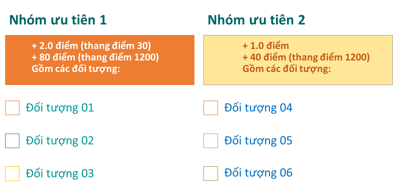 Mức điểm ưu tiên = Mức điểm ưu tiên khu vực + Mức điểm ưu tiên đối tượng